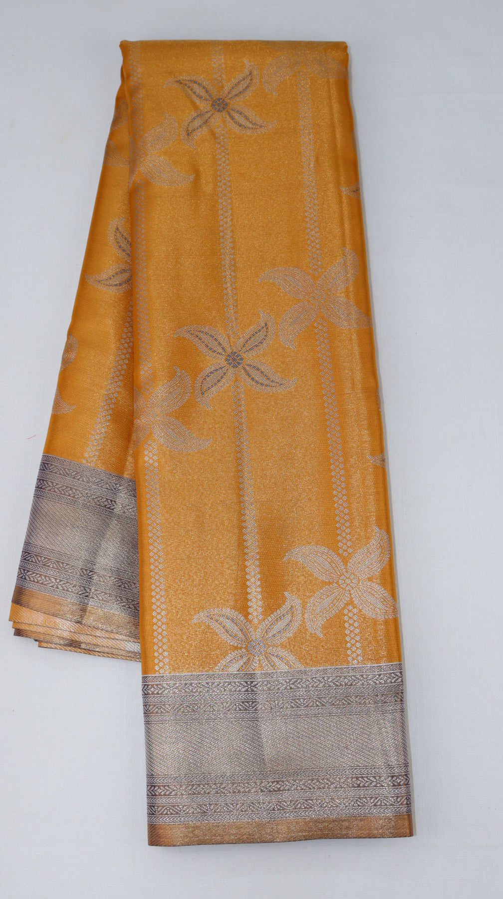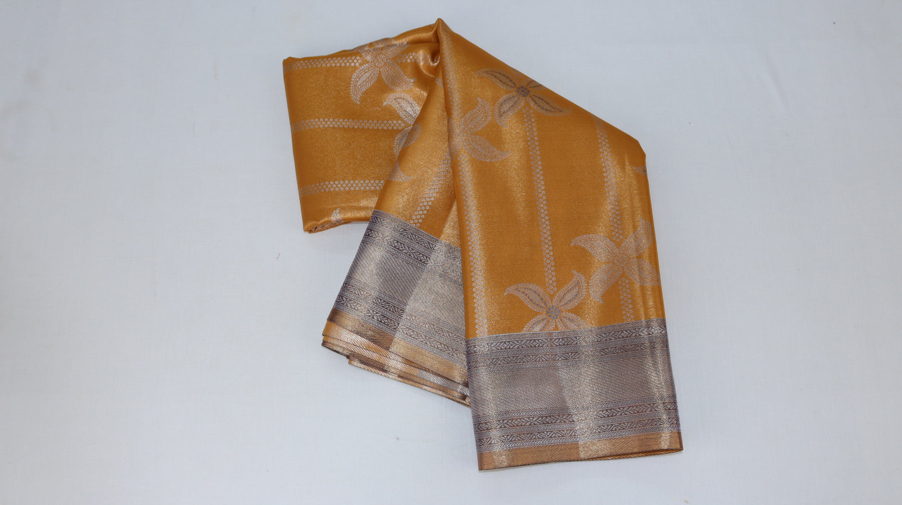 Experience the refined elegance of this pastel mustard Kanjipuram saree, a distinguished addition to any traditional collection. Woven with pure silk using time-honored Kanjipuram techniques, this saree showcases exquisite zari detailing and classical patterns that exemplify South Indian textile artistry. The warm, muted mustard tone strikes a perfect balance between tradition and contemporary style, flattering diverse skin tones while remaining versatile for weddings, festivals, and formal occasions. The saree's luxurious fabric offers superior drape and comfort throughout extended wear. A testament to authentic craftsmanship and timeless sophistication.
